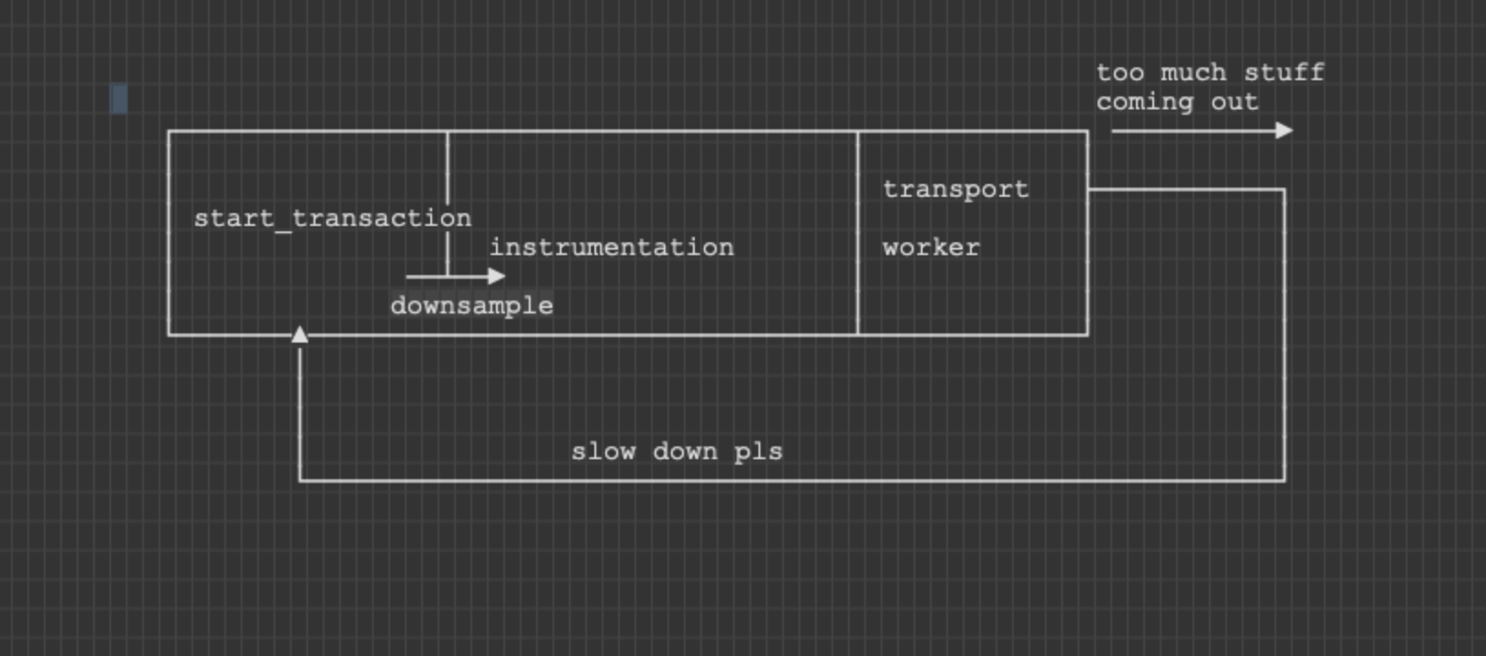 This component will periodically introspect the SDK for measures of throughput and if too high, will dynamically downsample transactions by halving the sample rate temporarily. Once the system has recovered to a healthy state, the SDK will revert to the sample rate set by the user.